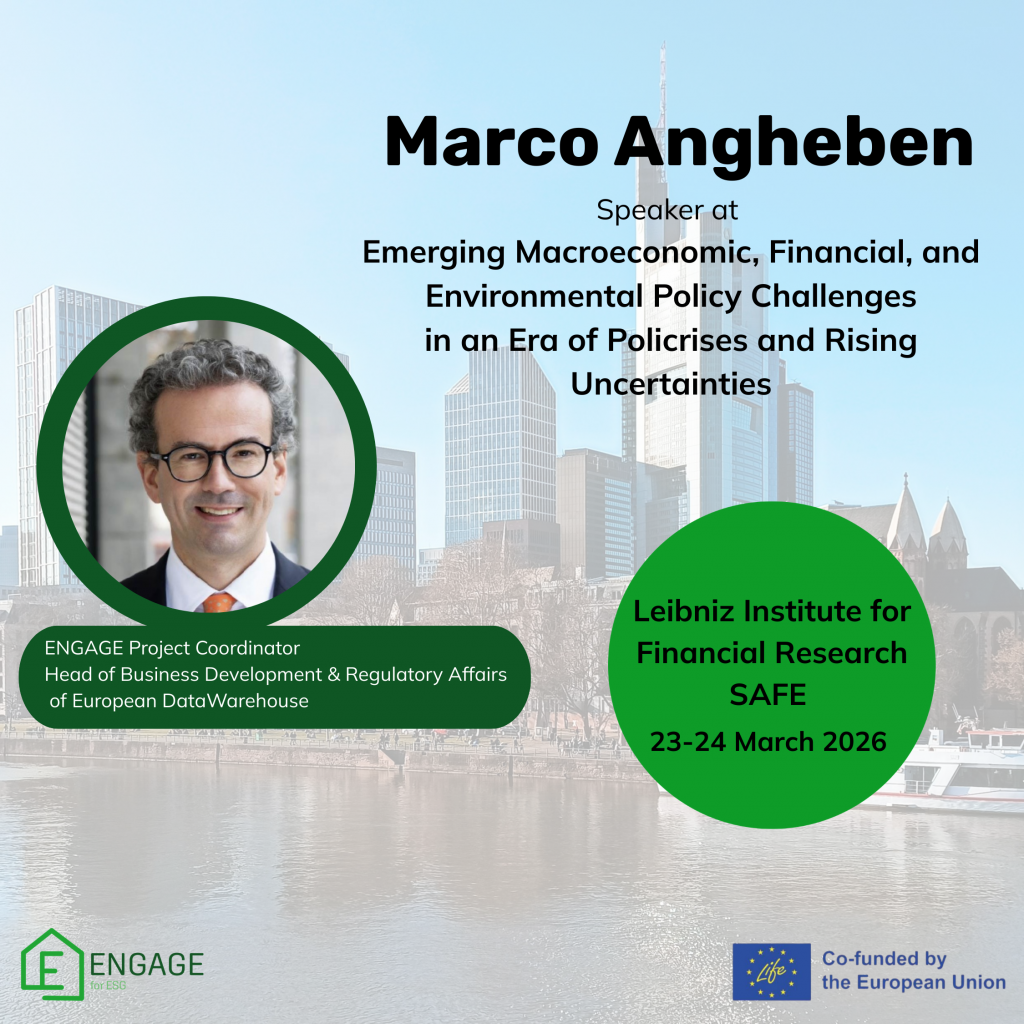 The Third International Conference on the Climate-Macro-Finance Interface (3CMFI): “Emerging Macroeconomic, Financial, and Environmental Policy Challenges in an Era of Polycrisis and Rising Uncertainties” The ENGAGE for ESG solution was presented at the 3CMFI, held in Frankfurt am Main on 23-24 March 2026. Marco Angheben, ENGAGE Project Coordinator, presented the White Paper on the Roadmap […]